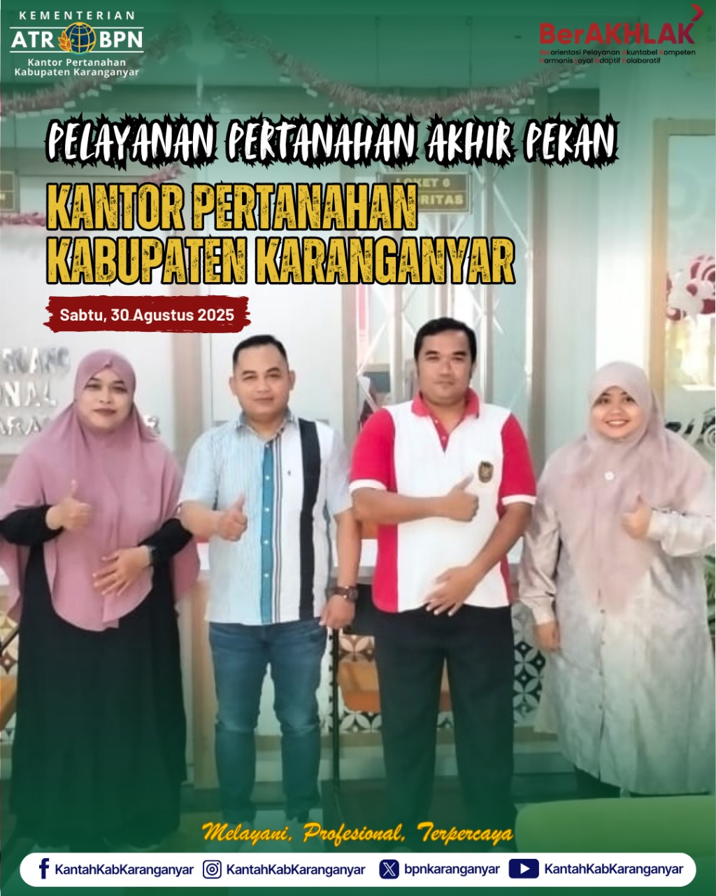 Yukk #sobATRBPN Karanganyar, ikuti dan pantau terus media sosial resmi Kantor Pertanahan Kabupaten Karanganyar untuk mengetahui update informasi seputar pertanahan!