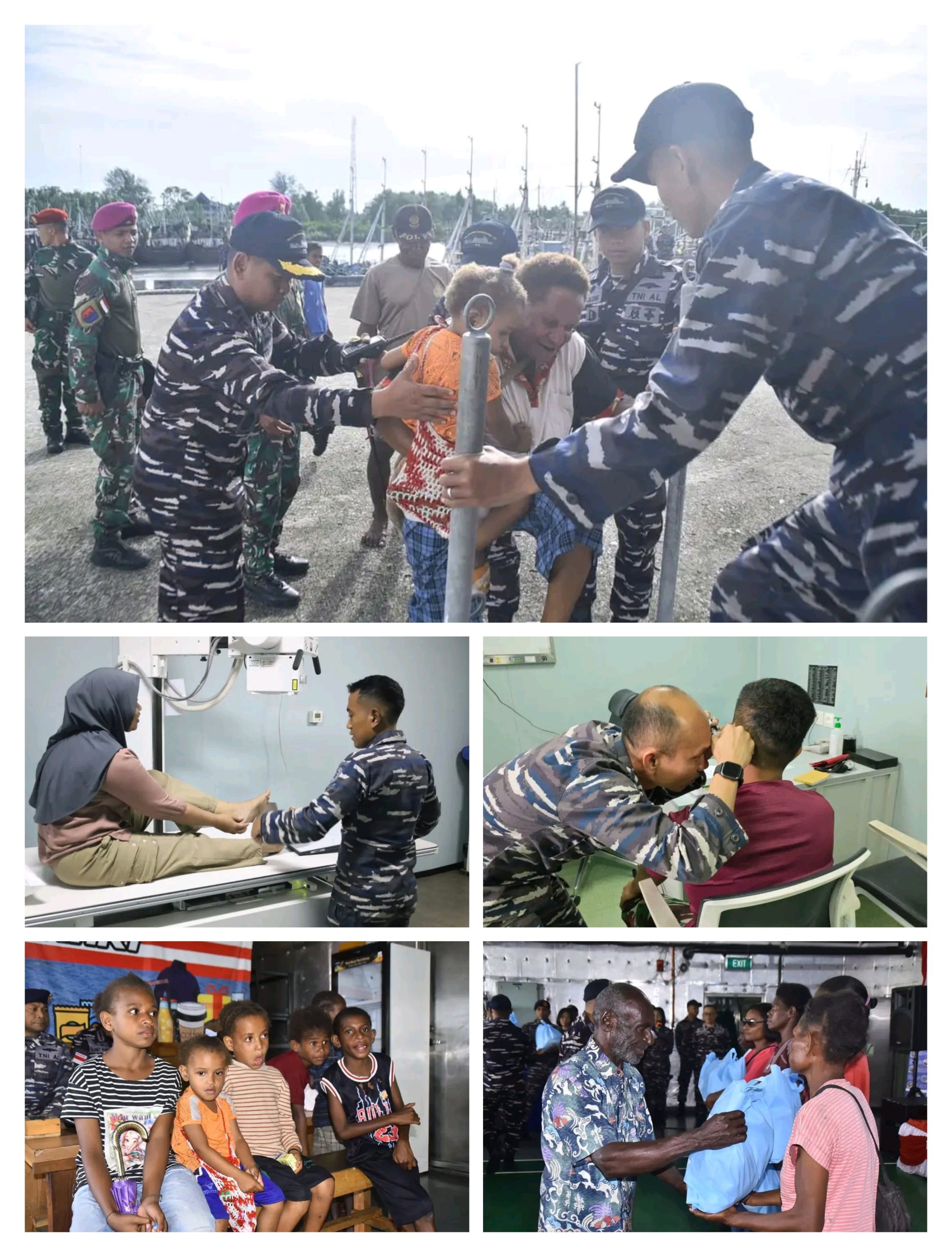 Papua – Pikiranrakyatnusantara.com Acara yang dibuka oleh Panglima Koarmada III Laksamana Muda TNI Hudiarto Krisno Utomo ini menegaskan komitmen pemerintah memperluas akses layanan kesehatan di wilayah perbatasan dan terpencil. Sekitar 20 tenaga medis TNI memberikan pemeriksaan dan pengobatan umum kepada lebih dari 200 pengunjung. Senin (22/9), di atas KRI dr. Wahidin Sudirohusodo-991 yang difungsikan sebagai rumah sakit terapung.