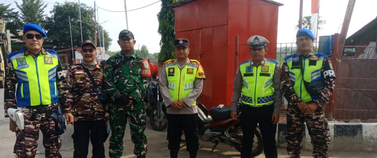 Adapun Personil PAM, Kopda Suhardi Babinsa Desa Jumbleng, Bhabinkamtibmas, Polantas Polsek Losarang, MP POL PP Kecamatan Losarang