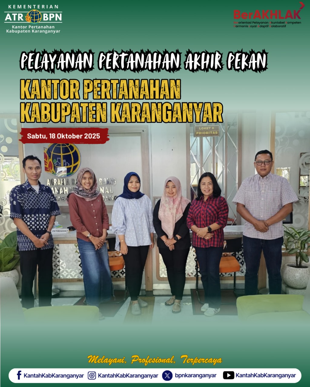 Yukk #sobATRBPN Karanganyar, ikuti dan pantau terus media sosial resmi Kantor Pertanahan Kabupaten Karanganyar untuk mengetahui update informasi seputar pertanahan!