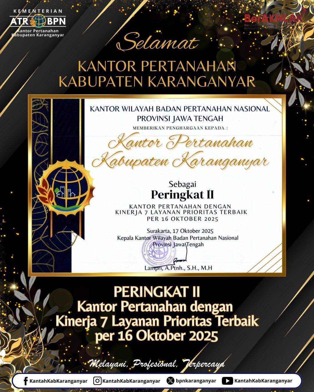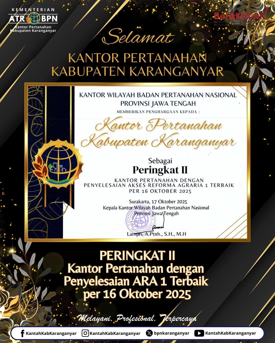 Yukk #sobATRBPN Karanganyar, ikuti dan pantau terus media sosial resmi Kantor Pertanahan Kabupaten Karanganyar untuk mengetahui update informasi seputar pertanahan!
