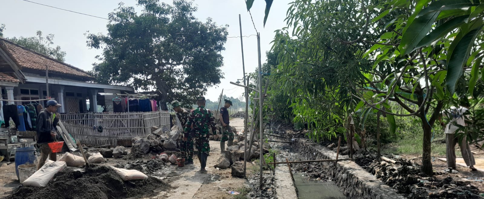 Indramayu,pikiranrakyatnusantara.com-Anggota Satgas TMMD ke-126 Kodim 0616/Indramayu terus melanjutkan pembangunan Tembok Penahan Tanah (TPT) yang berlokasi di RT 01/RW 01 Blok Sigedang, Desa Longok, Kecamatan Sliyeg, Kabupaten Indramayu, Senin (20/10/2025).