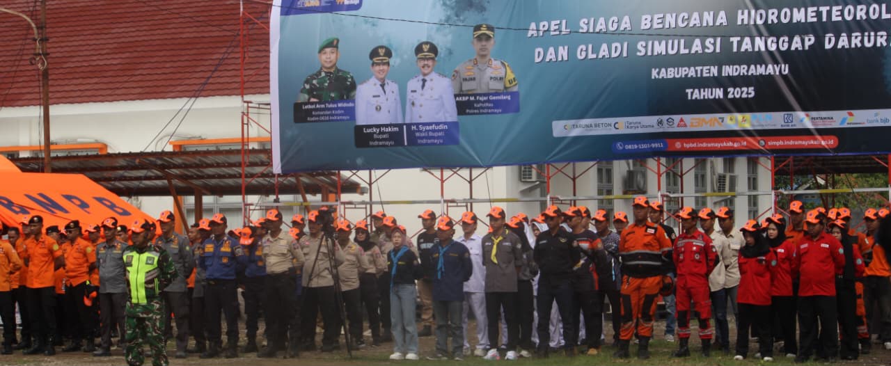 Indramayu,pikiranrakyatnusantara.com– Kasdim 0616/Indramayu Mayor Inf Sutarmin menghadiri kegiatan Apel Siaga Bencana Hidrometeorologi dan Gladi Simulasi Tanggap Darurat Tahun 2025 yang digelar di halaman Kantor BPBD Kabupaten Indramayu, Jl. Pahlawan No.62/A, Kelurahan Lemahmekar, Kecamatan Indramayu.