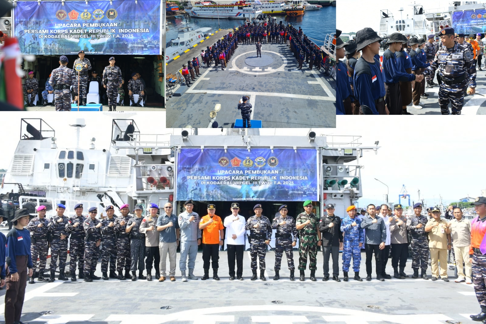 15 November 2025 – Dankodaeral VIII, Laksda TNI Dery Triesananto Suhendi, S.E., M.Tr.Opsla., memimpin Upacara Pembukaan Persami (Perkemahan Sabtu-Minggu) Korps Kadet Republik Indonesia (KKRI) Gelombang III Tahun 2025 di Geladak KRI Yos Sudarso-353 yang bersandar di Dermaga Samuel Languyu Satrol Kodaeral VIII Bitung, Sabtu (15/11/2025 )