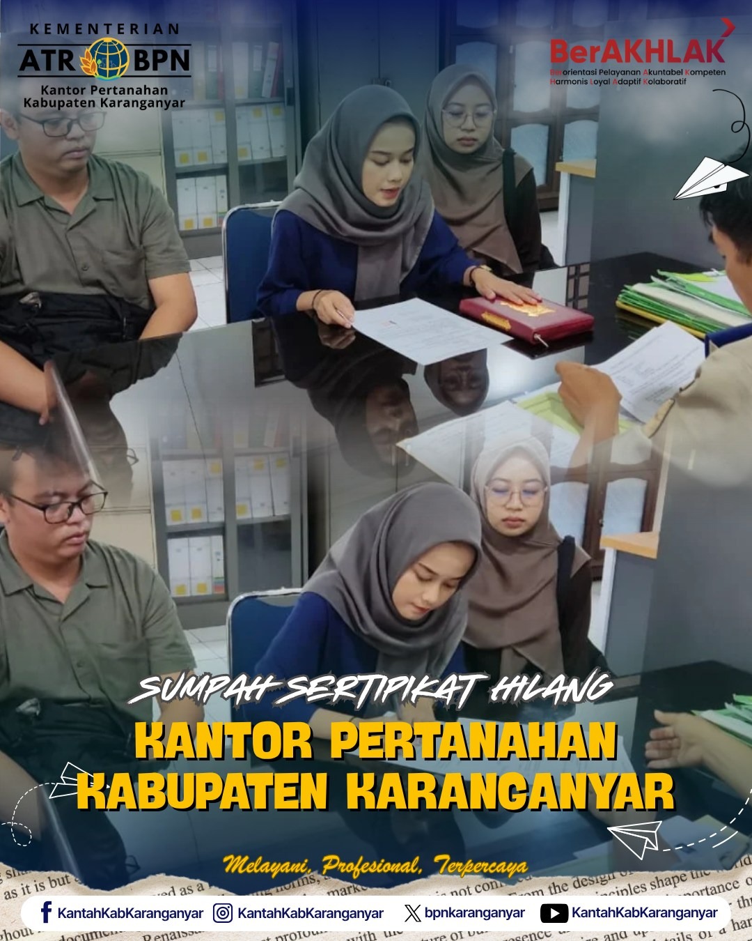 Yukk #sobATRBPN Karanganyar, ikuti dan pantau terus media sosial resmi Kantor Pertanahan Kabupaten Karanganyar untuk mengetahui update informasi seputar pertanahan!