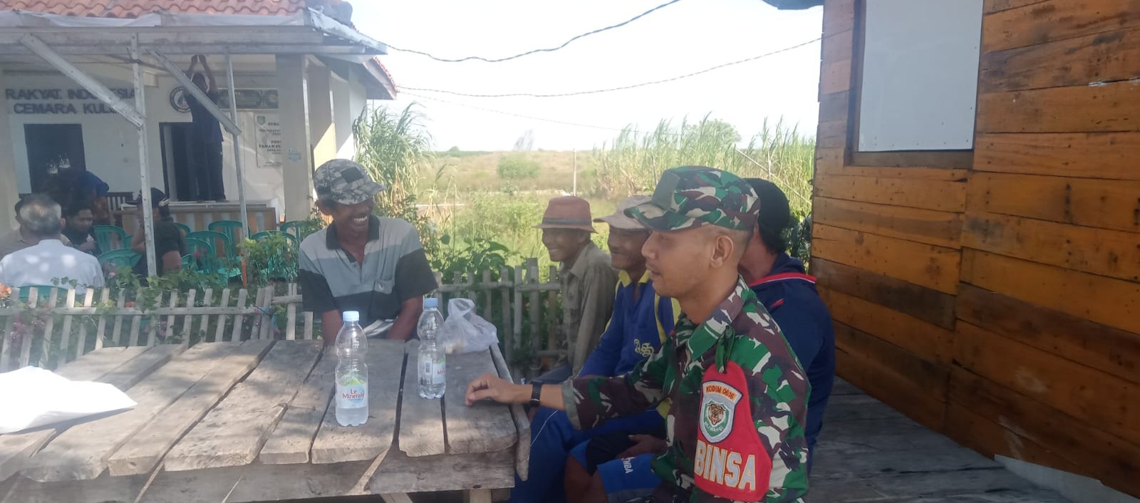 Babinsa Desa Cemara kulon Kopda Durasim saat bersama masyarakat desa Cemara kulon mengatakan bahwa adapun inti dari kegiatan Komsos, Menghimbau kepada masyarakat agar selalu waspada cuaca ekstrim Rob.