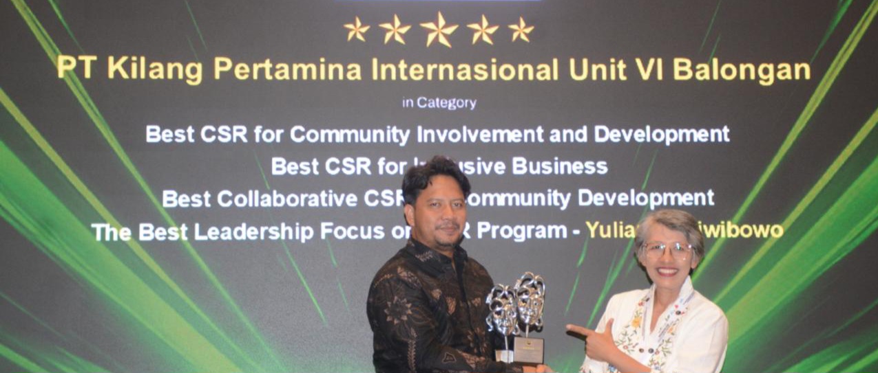 Penghargaan ini mencakup empat kategori sekaligus, yaitu The Best Leadership Focus on CSR Program (untuk General Manager Kilang Balongan, Yulianto Triwibowo), Best CSR for Community Involvement and Development, Best CSR for Inclusive Business dan Best Collaborative CSR for Community Development.