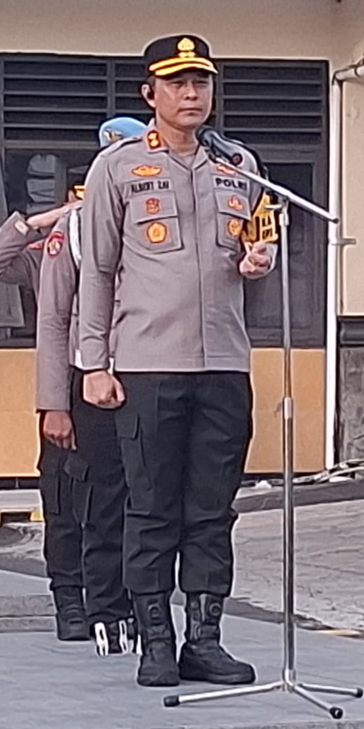 BITUNG — Kapolres Bitung AKBP Albert Zai, S.I.K.A., M.H., memimpin apel kesiapan pengamanan gereja dan ibadah Malam Natal 2025 yang dilaksanakan di Lapangan Upacara Polres Bitung, Rabu (24/12/2025) pukul 16.00 Wita.