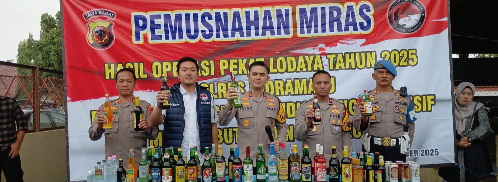 Indramayu,pikiranrakyatnusantara.com-Upaya menutup celah gangguan keamanan menjelang pergantian tahun dilakukan Polres Indramayu dengan cara tegas. Sebanyak 21.560 botol minuman beralkohol dan minuman keras (miras) hasil Operasi Penyakit Masyarakat (Ops Pekat) 2025 dihancurkan di Mapolres Indramayu, Rabu pagi (31/12/2025).