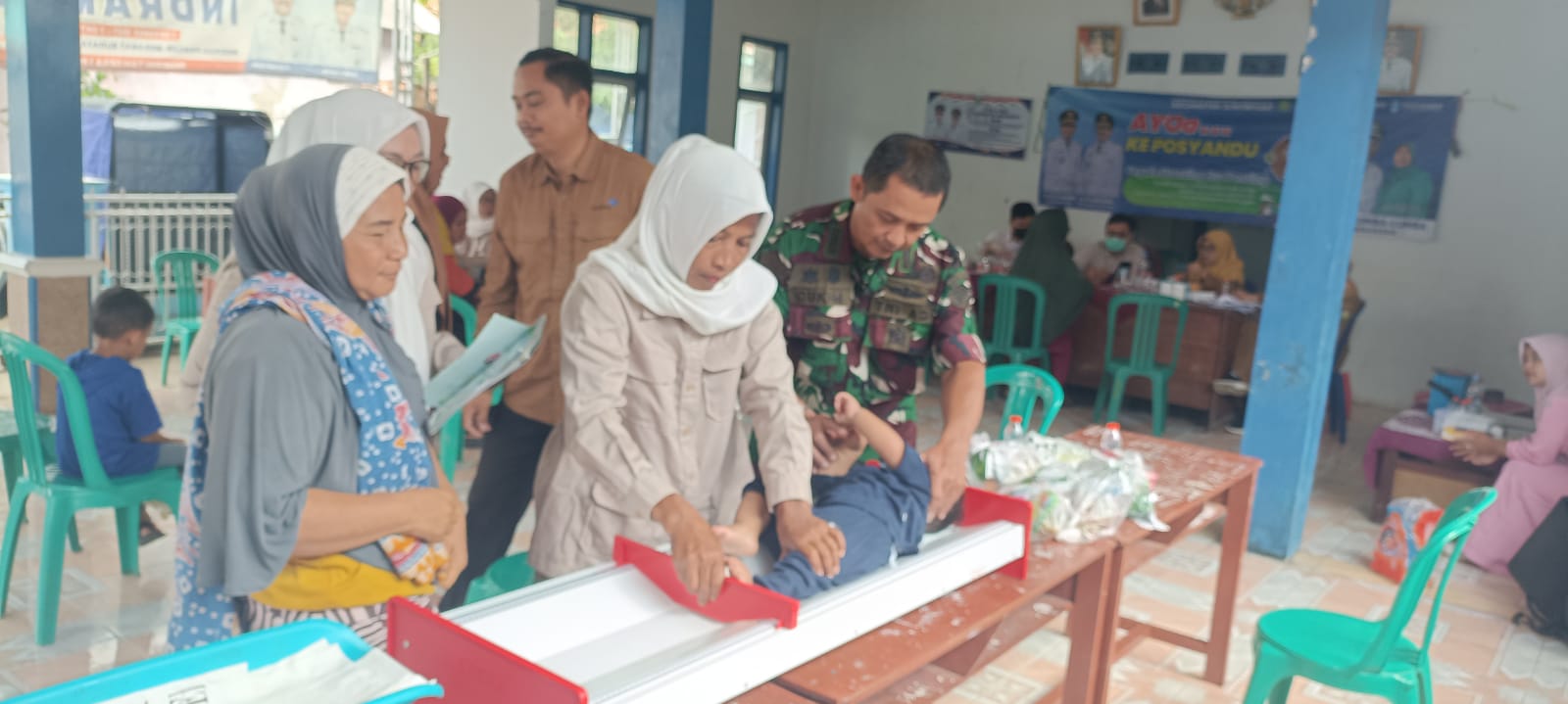 “Pada kesempatan ini dilaksanakan penimbangan/ pengukuran balita, dan lansia serta pembagian makanan tambahan, vitamin untuk balita, guna mencegah stunting,”Kata Pelda H.Cukim.