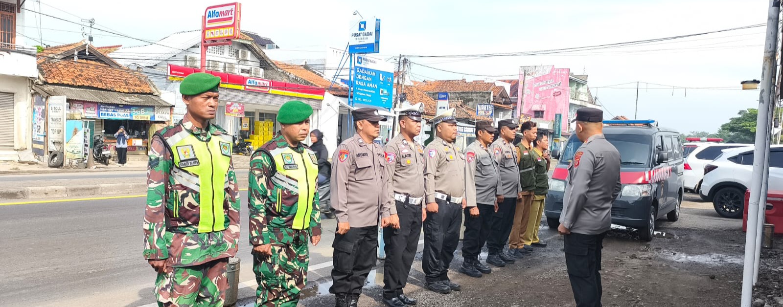 Personil PAM dari Koramil 1605/Sukagumiwang, Sertu Sumber W, Serda Suwirno, Kapolsek Sukagumiwang, dan dari Dinas Kesehatan Indramayu.