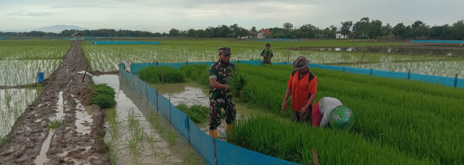 Anggota Koramil 1605/Sukagumiwang Laksanakan Monitoring dan Pendampingan Pertanian Tanam Padi di Desa Jambe