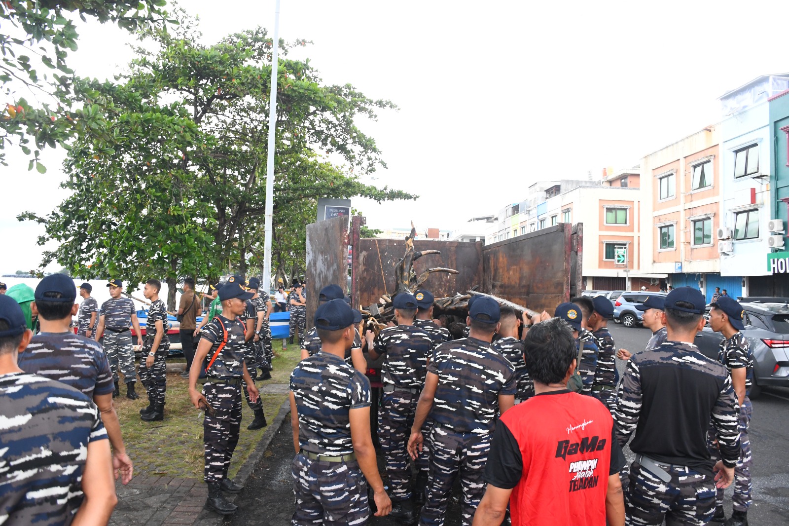 Karya bakti tersebut melibatkan total 270 personel gabungan, yang terdiri dari Prajurit Kodaeral VIII, pengurus kawasan Megamas, serta para nelayan setempat. Dengan semangat gotong royong, para peserta membersihkan area pantai dari berbagai jenis sampah yang mencemari lingkungan.