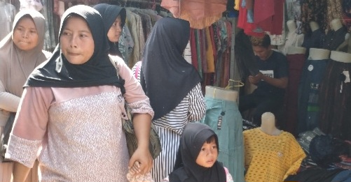 Salah satunya Nani, warga Kecamatan Jatitujuh, Kabupaten Majalengka. Ia datang bersama anak dan adiknya dengan mengendarai sepeda motor untuk membeli baju muslim sekaligus pakaian baru bagi anak laki-lakinya serta bingkisan untuk sanak saudara.