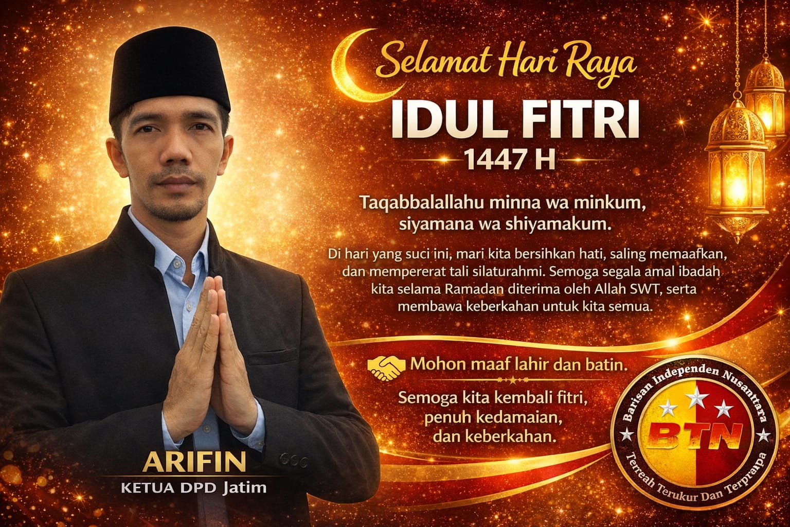Ketua LSM BIN DPD Jawa Timur Ucapkan Selamat Hari Raya Idul Fitri 1447 H, “Mari Pererat Silaturahmi dan Sebarkan Kebaikan”