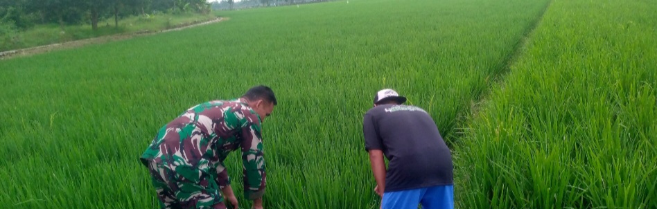 Kegiatan tersebut berlangsung di area persawahan milik petani bernama Anto dengan luas lahan sekitar 1,5 hektare. Dalam kegiatan ini, Serda Kasanudin turut mendampingi proses pemeliharaan tanaman padi yang tengah dilakukan oleh petani setempat.