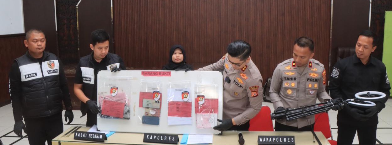Kapolres menyebut sejumlah barang bukti diamankan petugas, di antaranya flash disk berisi rekaman video, dua unit handphone (Oppo dan iPhone), pelumas, kondom, dua buah ring light, seperangkat make-up, hingga pakaian dalam.