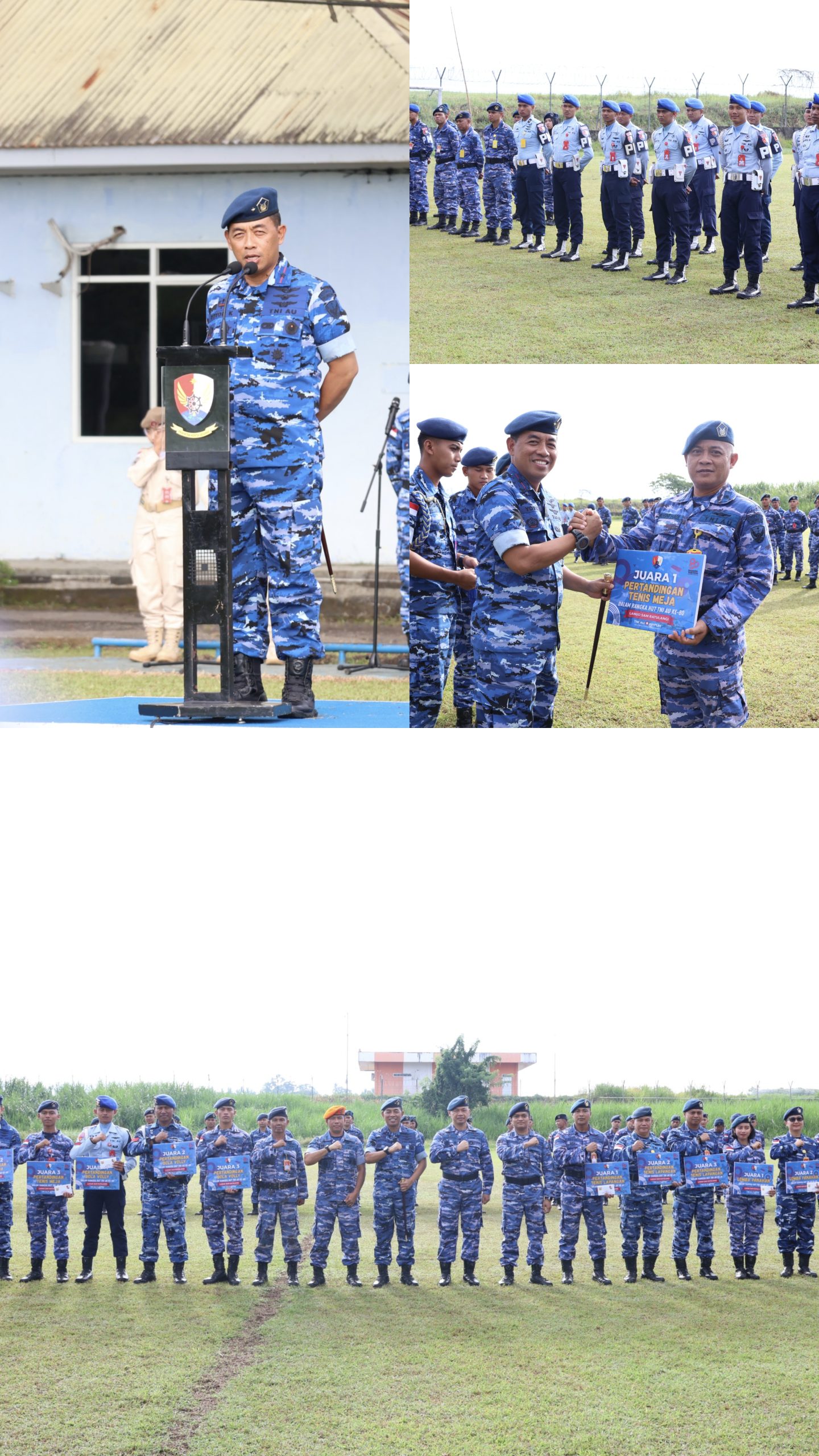 MANADO — Rangkaian peringatan Hari Ulang Tahun (HUT) ke-80 TNI Angkatan Udara di Lanud Sam Ratulangi resmi ditutup dengan penyerahan hadiah lomba antar satuan kerja (satker) oleh Komandan Lanud Sam Ratulangi, Marsma TNI Yoyon Kuscahyono, S.Sos. Kegiatan berlangsung di Lapangan Dirgantara Lanud Sam Ratulangi, Manado, Senin (20/04/2026).